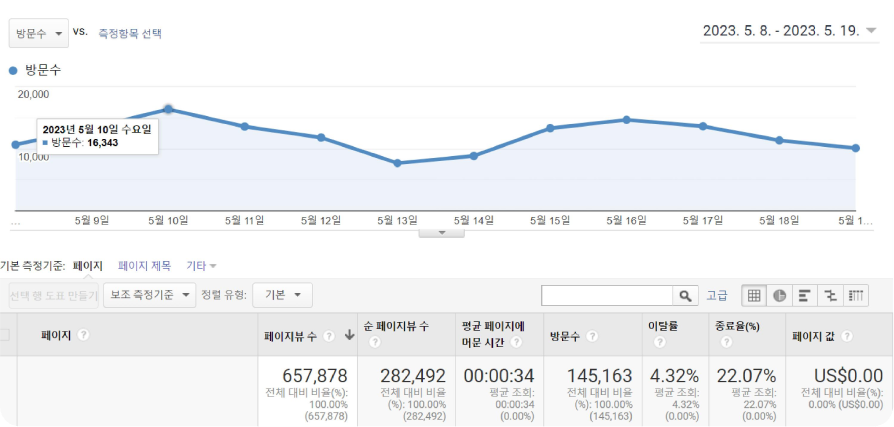 하루 평균 방문자 1만 2천명, 페이지뷰 5.5만